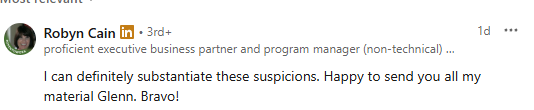 According to Glenn LinkedIn statement: