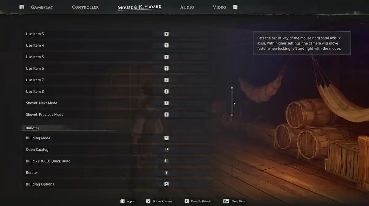 Here you will see a list of all actions you can perform in Windrose. Remap the controls your preference.